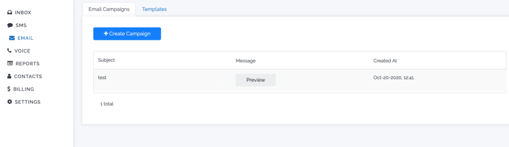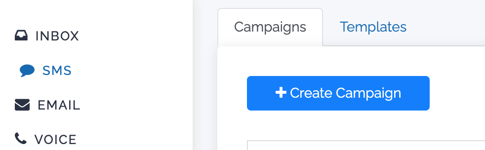 1. Select the SMS tab in the menu and click +Create Campaign