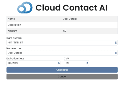 CloudContactAI will then process your payment.
