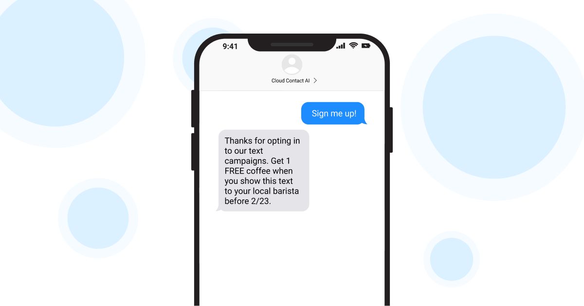 Disclaimer: The above information and advice are for informational purposes only. Cloud Contact AI and its affiliates are not responsible if your organization gets penalized. Your business should consult the appropriate legal counsel before you begin your SMS outreach.